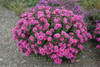 Short, compact and dense aster with vibrant, hot pink flowers that bloom from summer to mid-fall. Dark green leaves.