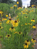 The daisy-like flowers appear on rigid stems, with slightly drooping petals that are bright yellow (orange-yellow) and large coppery-brown cones - these stay on the plant until winter and can be used in dry flower arrangements. It is a quite long-living perennial (about 10 years), but it will also self-seed.