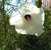 Usually grows taller in its natural habitats than when cultivated; the bigger white flowers appear in late summer, and the narrow, ornamental leaves have a shape similar to that of a duck's foot (it's sometimes called narrow-leaf hibiscus). Attracts native bees.