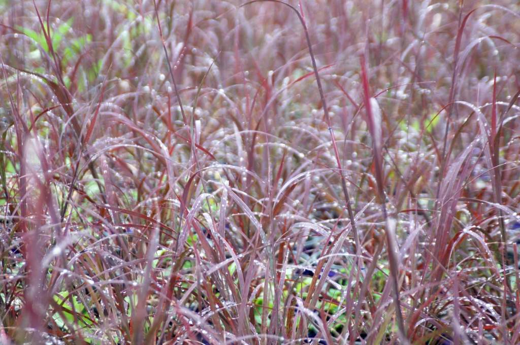 Hazy Blue™ - blue green foliage turning, dusky flower culms in dark shades of navy, maroon, and glaucous purple. Part of Hortech's Prairie Proud® serie
