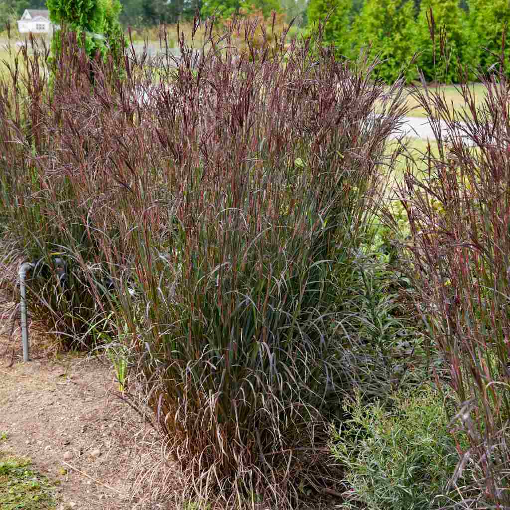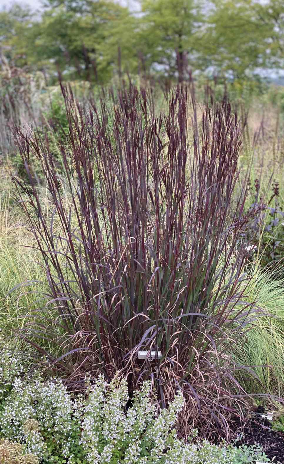 Karl's Cousin® (the cultivar name is very technical 'Nondhwr') - shorter (4.5'), strictly upright and very narrow, green-blue foliage turns to rich purple-blue with late season. Part of Hortech's Prairie Proud® serie