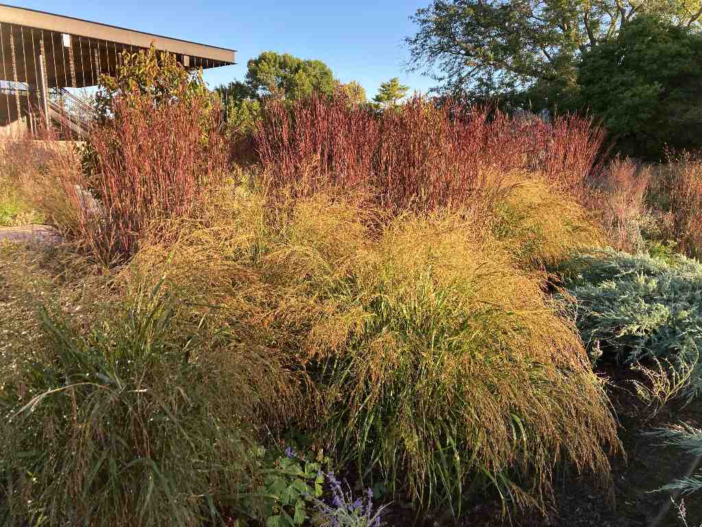 Bigger block planting with Panicum 'Niagara Falls' and Juniperus 'Gray Owl' at © Olbrich Botanical Gardens, Madison, WI