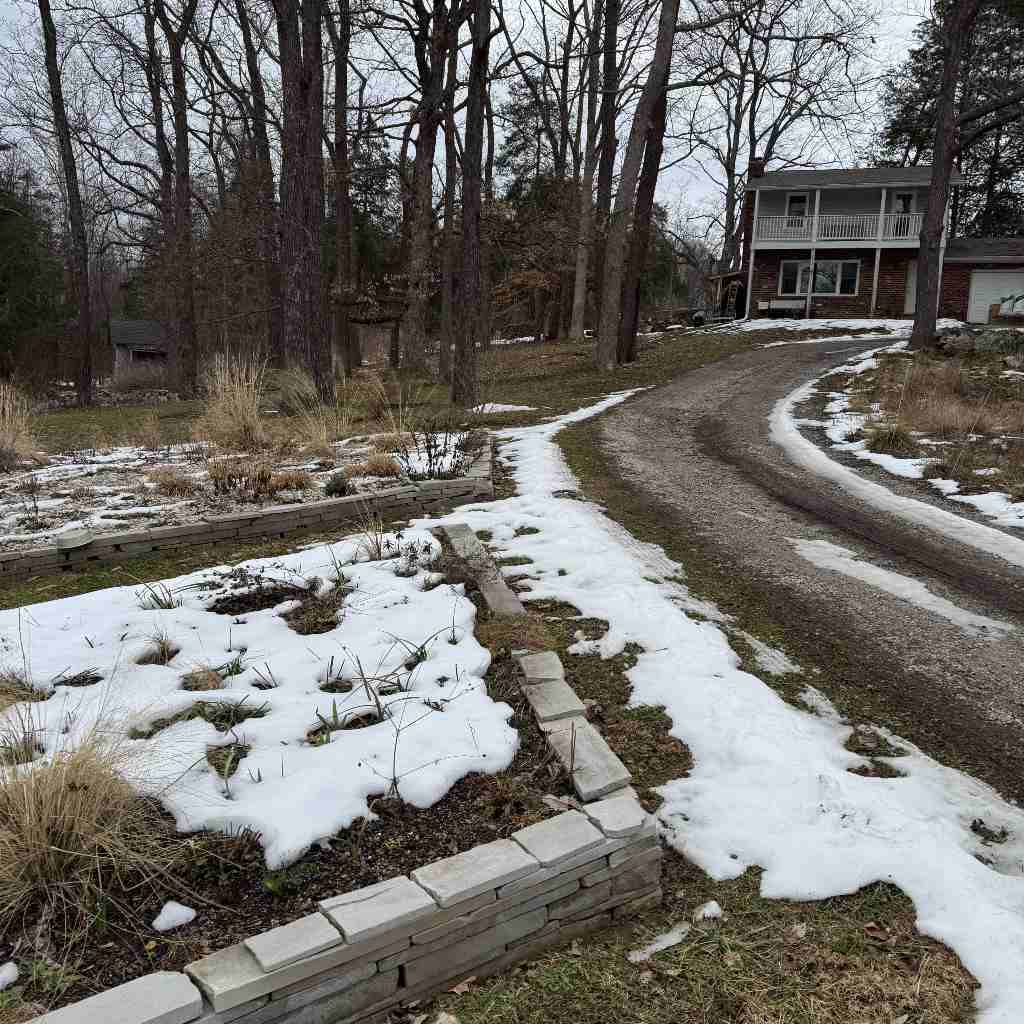 Third year, end of the winter 2024. Snow melts faster on the sand than on traditional organic mulch. The sand does warm up faster, but can also freeze deeper than the common soil.