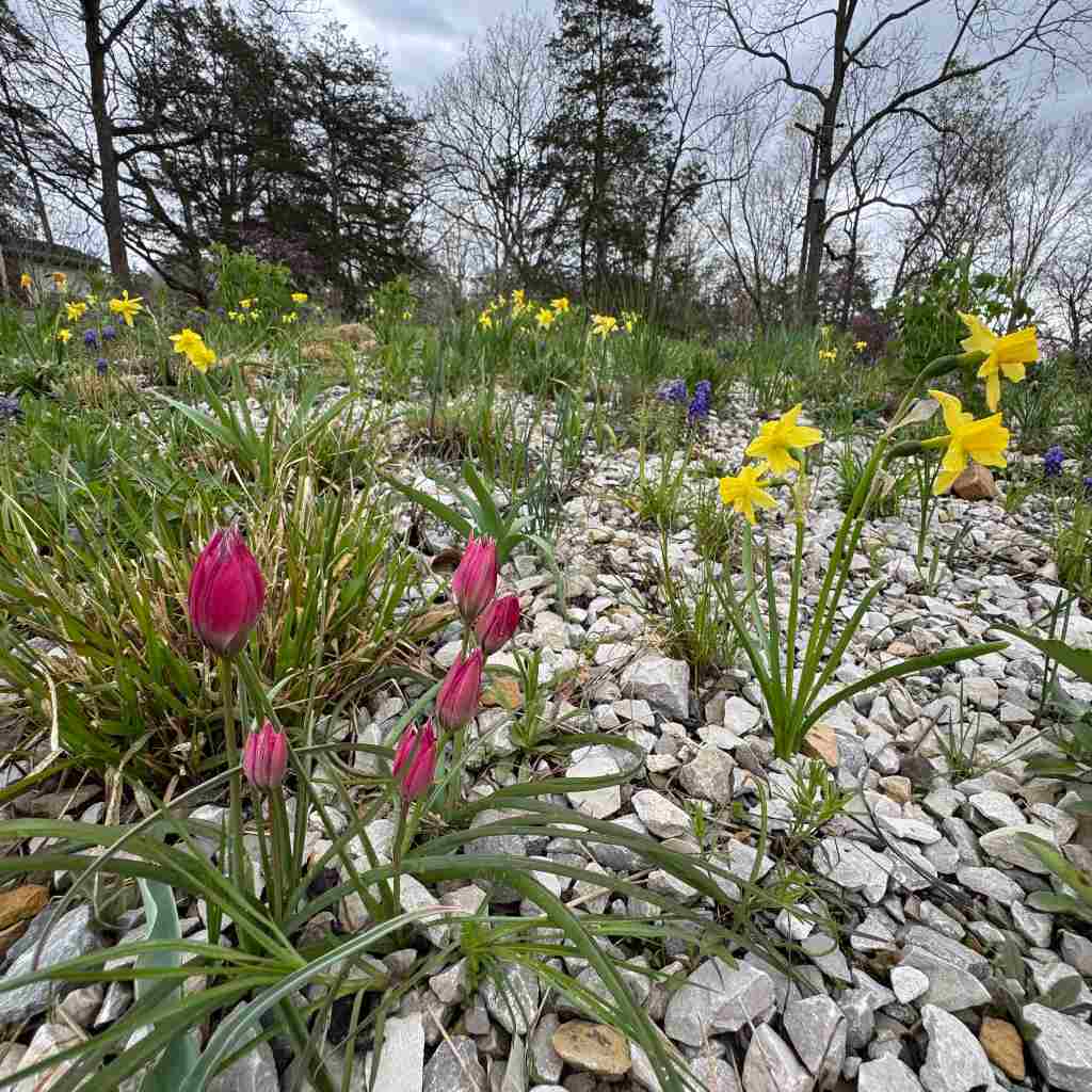 Spring 2025, the fourth season - Tulipa 'Little Beauty' (Botanical Tulip) with Narcissus 'Baby Moon' (Dwarf Jonquil Daffodil 'Baby Moon') and Muscari armeniacum (Grape Hyacinth)