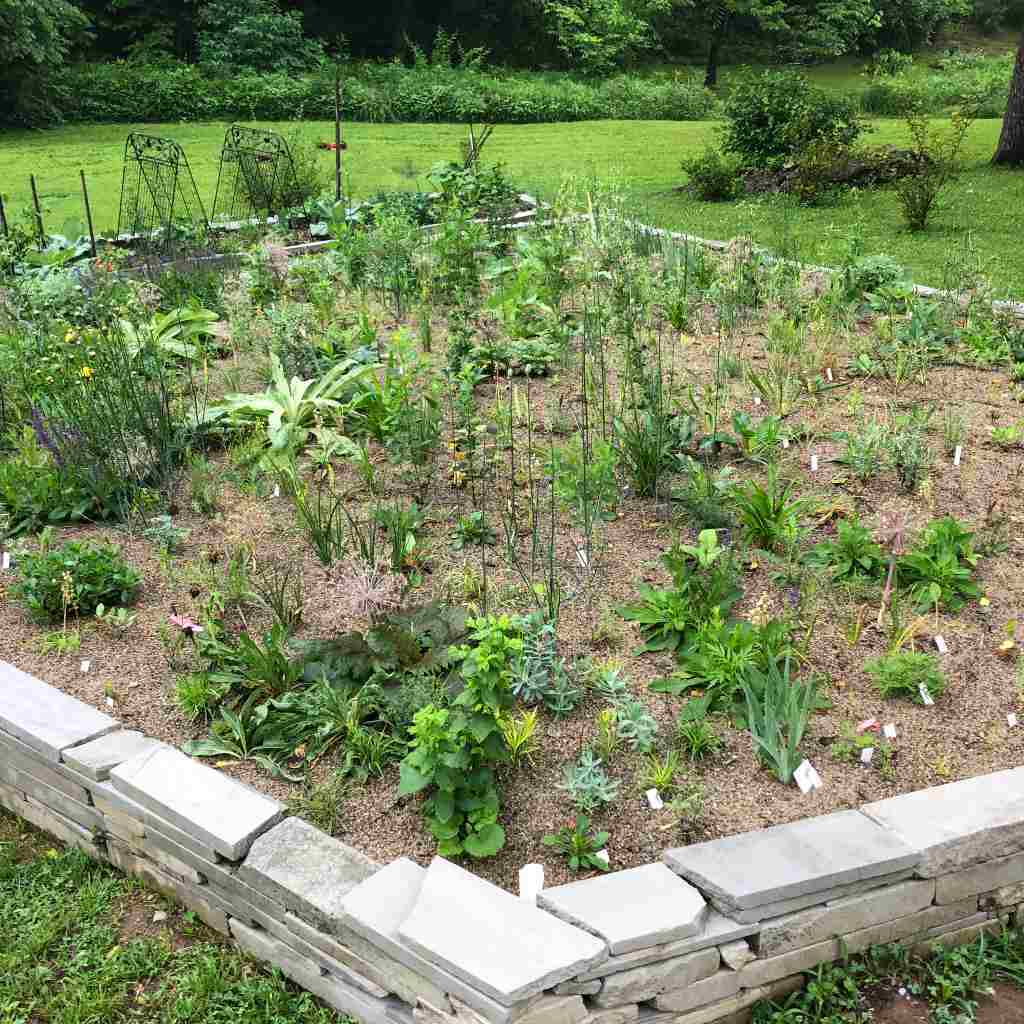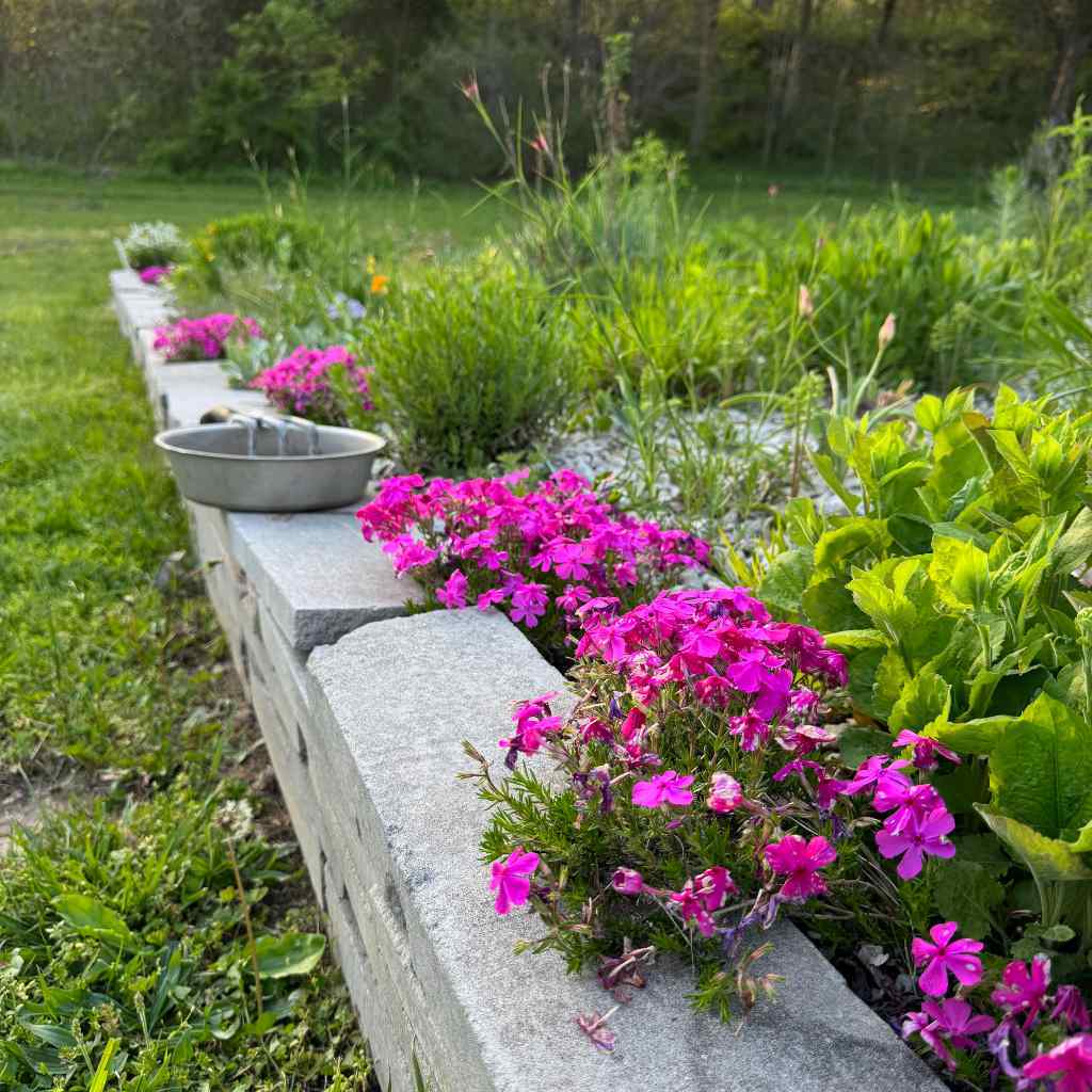 MOVING TO USA FROM THE CZECH REPUBLIC was a big leap. Sometimes life takes you somewhere you wouldn’t expect to go at the first place. Anyways, I started to garden in the new place close to Indianapolis pretty much immediately in late summer 2017. Quickly I changed one neglected corner into a sand bed. I repurposed flat rocks (edging remnants) into round raised bed, cleaned up the yard and buried there some muddy river rocks from around the pond, scooped some soil, build the wall and then filled it with sand.