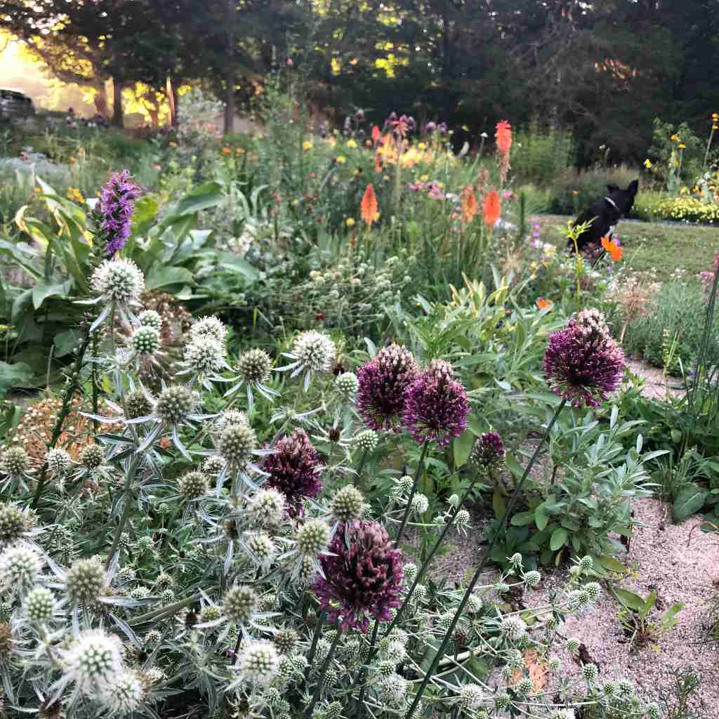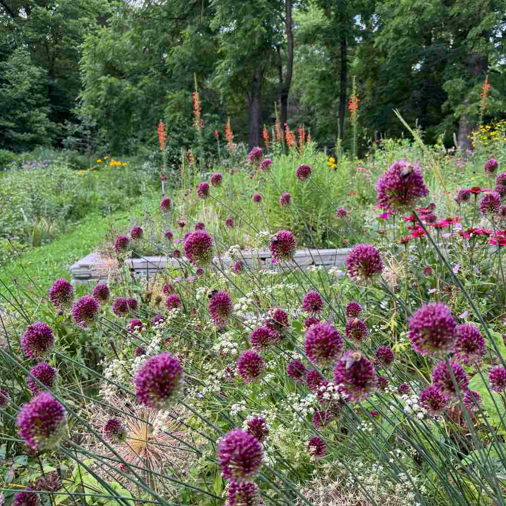 First year, June 2022. Eryngium planum (Sea Holly) was a mislabeled plant, I ripped it out at the end. But it did very well and there were tons of pollinators on them. Allium sphaerocephallon (Drumstick Allium) is a great one.