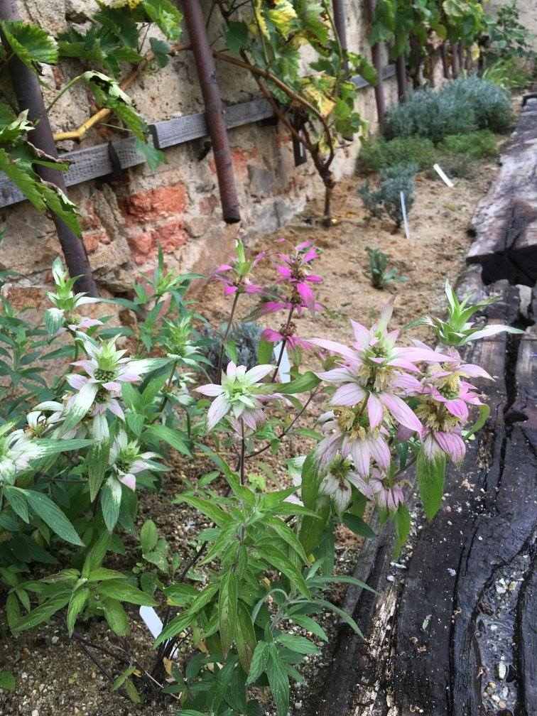 First sand bed attempt in the Czech republic (2015) with Monarda punctata in the front. South facing wall, 1-1.5' (30-45 cm) of sand. Various herbs and grapes were planted there (Lavandula assortment, Hyssopus, Satureja, Origanum, etc.)