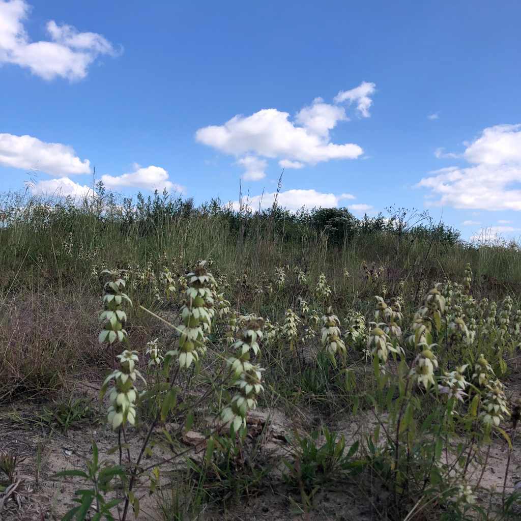 Kankakee Sands (Indiana/Illinois) in early fall - small hill of pure sand with Monarda punctata (Spotted Beebalm). Notice the very sparse vegetation and the bare areas.