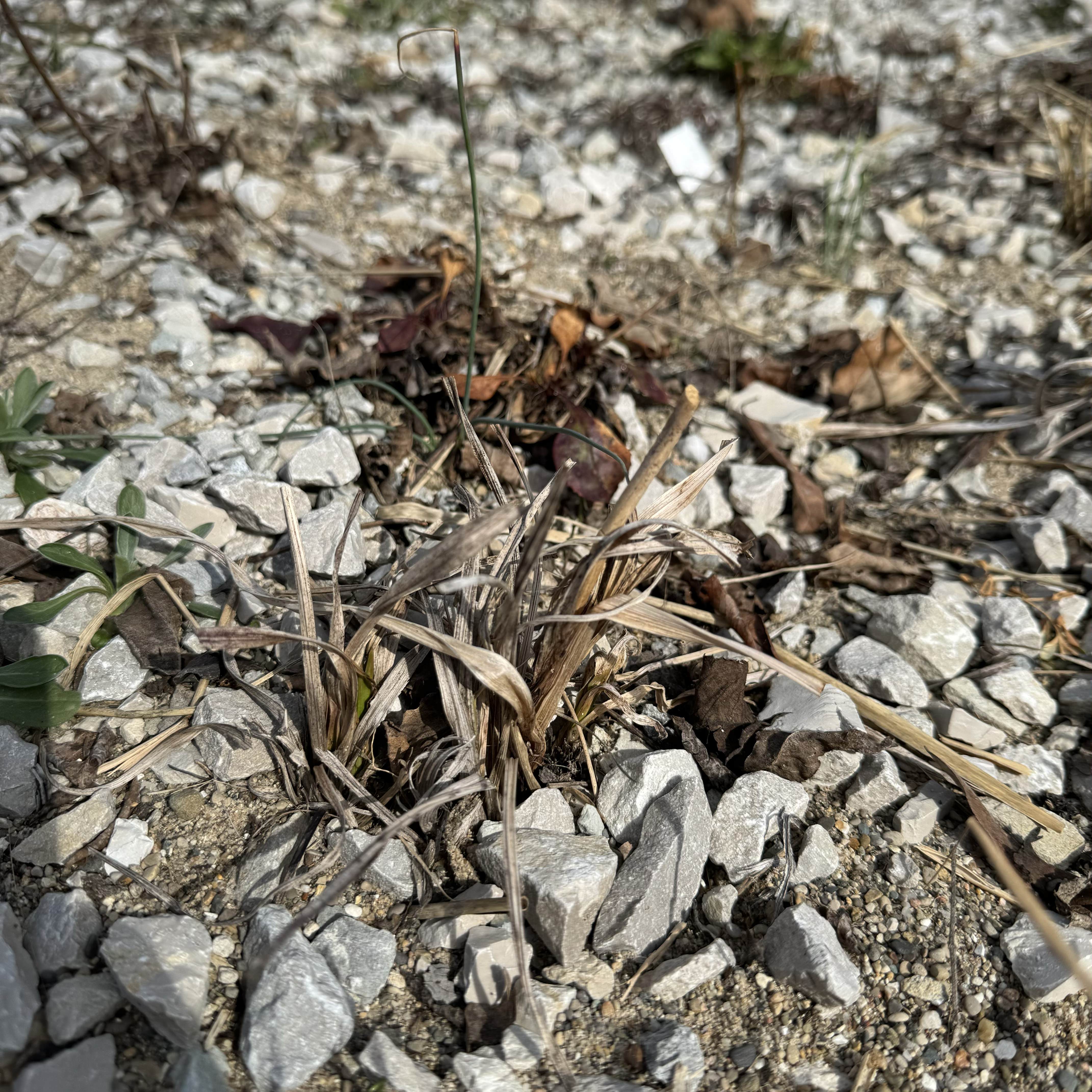 Second year, pre-spring 2023. Coarse top layer applied (2 fractions of local limstone gravel) - this protects the top layer from drying out too fast and the little gaps among the rocks allow plants to seed in more. Selfseeding is needed and welcomed. Combining 2 or 3 different sizes helps to create more natural look.