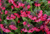 Large, spreading clumps, deep shrimp pink flowers in the spring, green leaves with prominent white spots.