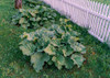 Old-fashioned and still-popular edible plant. But also a very ornamental plant with bold structure, reddish stems, and cream-white flowers. Very deer and rabbit resistant!